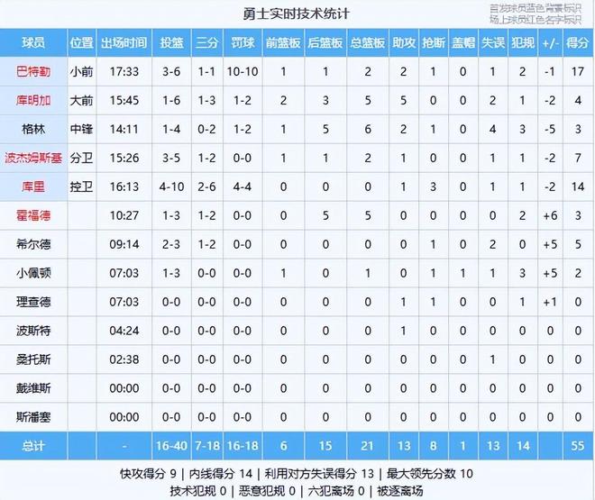 揭幕戰(zhàn)重頭戲!勇士55-54湖人,看數(shù)據(jù):頭號功臣是他!