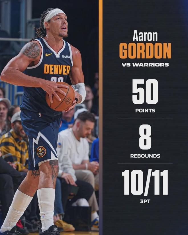 掘金那邊,最耀眼的莫過于呂布,不,戈登,三分球11中10&僅站上罰球線6次狂轟50分外加8板2助,無奈進(jìn)入了空砍群,使里程碑變成了里程悲,沒有勝利加持的豪華數(shù)據(jù)并不是很值得高興。
